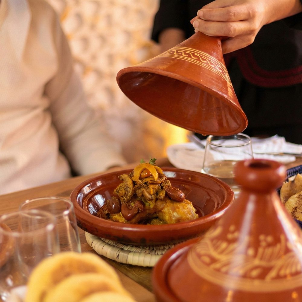 Le menu mêle les racines marocaines aux influences méditerranéennes, pour une cuisine généreuse, profonde et intimement liée à la terre. Vous y trouverez les classiques de Marrakech aux côtés de plats plus légers, inspirés du jardin. Il y en a pour tous les goûts : viandes mijotées pour les amateurs de saveurs riches, poissons parfaitement cuisinés pour ceux en quête de fraîcheur, et assiettes végétariennes colorées mettant en valeur le meilleur des produits de saison.